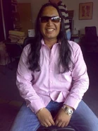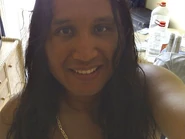 - Long black hair.